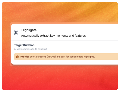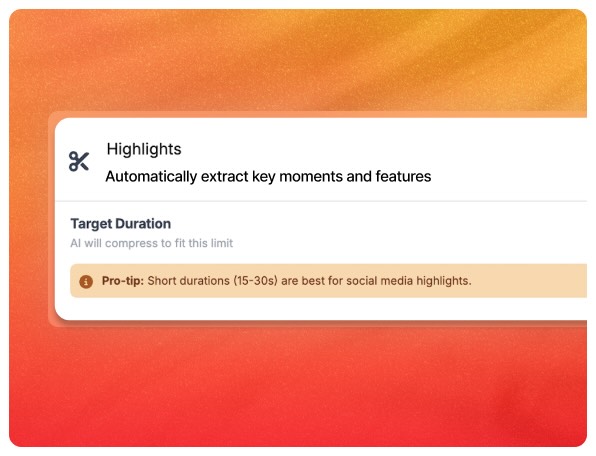 Automatically convert long product videos into high impact highlights using AI, no manual editing.