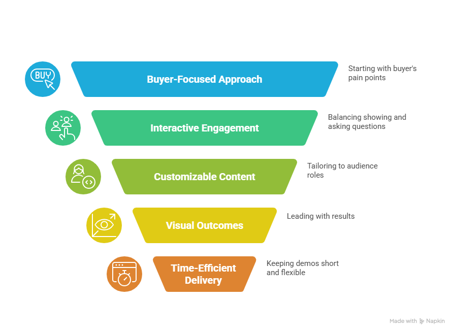 High-performing teams follow a few core principles consistently. These aren’t theoretical ideas. They’re practical habits that keep demos relevant, engaging, and aligned with how buyers actually make decisions.