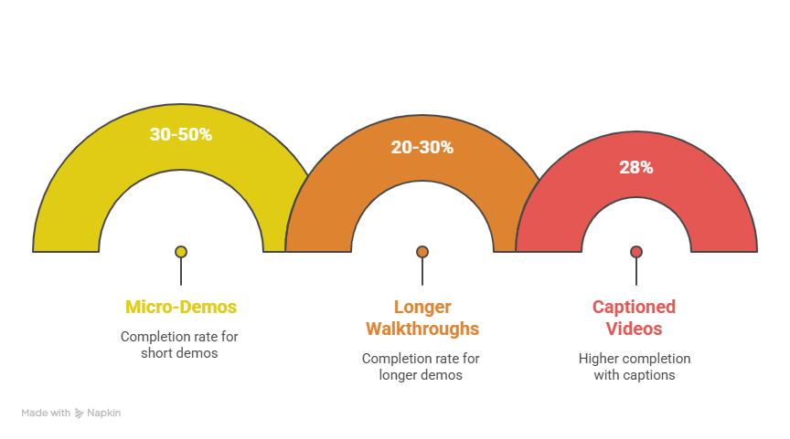 - Optimal Length: B2B videos perform best at 4–5 minutes, while social snippets or micro-demos can be under 60 seconds.